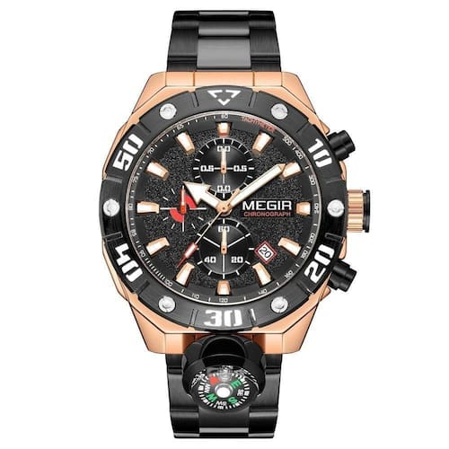 Marca: MEGIRGênero: HomensExibição: Analógico, Cronógrafo3ATM/30M resistente à água (não suporta banho, natação e mergulho)Case Material:Zinc Alloy CaseMovimento: Movimento QuartzMaterial Band: AçoProcesso diâmetro: 46mmCaso espessura: 13,6 milímetrosBanda Largura: 22mmComprimento total: 220mmPeso neto: 180gundefinedPacote incluído:- 1undefinedX MEGIRundefinedRelógios-undefinedundefinedundefinedundefinedundefinedundefinedundefinedundefinedundefinedundefinedundefined