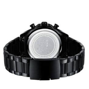 Relógio de pulso masculino com mecanismo a quartzo e design esportivo. Possui um dial grande para leitura fácil e é impermeável até 3ATM, tornando-o resistente à água para uso diário e atividades leves. Ideal para quem busca estilo e praticidade.