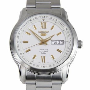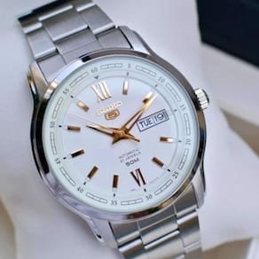 comprimento: 24 cm diâmetro da caixa: 42 mm altura: 11 mm 1 ano de garantia oficial movimento automático calibre 7s26 caixa de aço inoxidável prata pulseira de aço inoxidável prata 21 joias cristal mineral hardlex mostrador branco mãos e marcadores luminosos puxe / empurre a coroa ver através do verso da caixa fecho dobrável com botão de pressão janela de dia e data às 3 horas posição 50m de resistência à água acompanha: certificado azul + caixa + relógio. ative sua garantia com o relógio em mãos juntamente com qr code