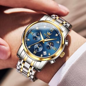 OLEVS Relógio de pulso masculino azul com cronógrafo, vestido luxuoso, fase da lua, grande, aço inoxidável, à prova d'água, luminoso, calendário de negócios - Relógios OLEVS masculinos: movimento japonês importado, bateria de alta qualidade, relógio romano com mostrador analógico, hora precisa, pode atender a várias necessidades em sua vida diária e trazer comodidade. - Relógio masculino multifuncional: relógio masculino com cronógrafo com três submostradores, mostrando 60 segundos, 60 minutos e uma janela de calendário à direita. O estilo de design é simples, , clássico e generoso. - Relógio de aço inoxidável: pulseira preta de aço inoxidável 316L, relógio de pulso masculino de negócios, ótimo para pulsos grandes, bom relógio de luxo para homens. Ferramenta de ajuste de pulseira de aço inoxidável, o comprimento do relógio de pulso masculino pode ser ajustado de acordo com o tamanho do pulso. - Relógio luminoso/impermeável: 3 ATM à prova d'água atende às necessidades diárias à prova d'água. A função luminosa pode ler o relógio no ambiente escuro. É um relógio essencial para homens maduros. - Relógios OLEVS Moon Phase: devolução de 30 dias e garantia de 12 meses. Se você tiver alguma dúvida sobre o produto, comigo imediatamente e lhe daremos uma solução satisfatória.