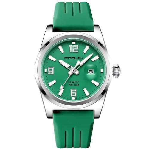 Relógio De Pulso Quartzo Esportivo À Prova Da Água Pulseira Silicone Verde