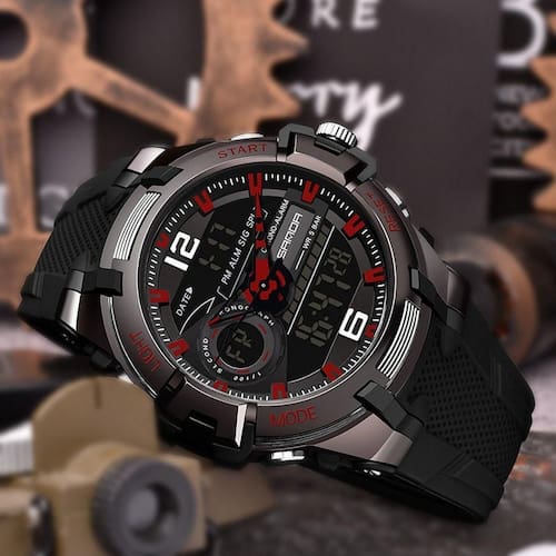 Característica: Cronômetro,luz de fundo,À prova de choque,Tela de LED,Luminous,Data automática,Calendário completo,À Prova D'Água,ALARME,nadar,Semana de Exibição