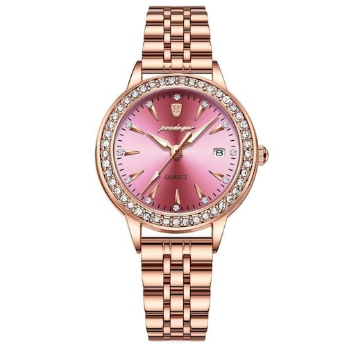 Relógio De Quartzo Elegante Para Mulheres Luxo Com Strass Pulseira De Aço Inoxidável Ouro Rosé Pk