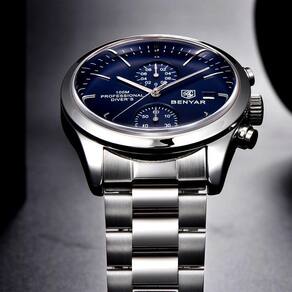 Relógio De Quartzo Esportivo Masculino Benyar Luxo Impermeável Cronógrafo Azul Aço