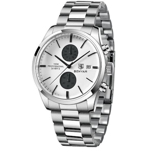 Relógio De Quartzo Esportivo Masculino Benyar Luxo Impermeável Cronógrafo Branco Aço