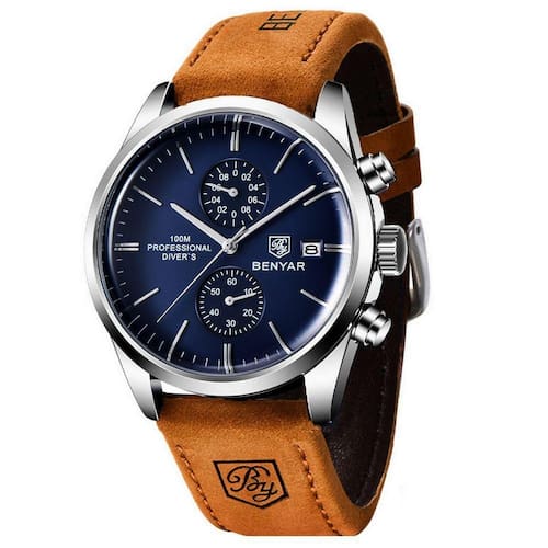 Relógio De Quartzo Esportivo Masculino Benyar Luxo Impermeável Cronógrafo Marrom Azul