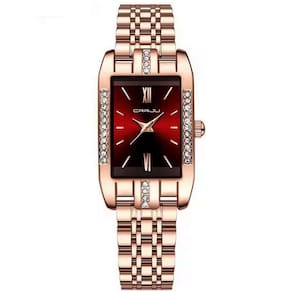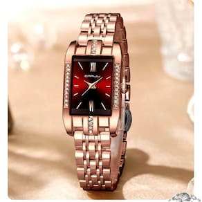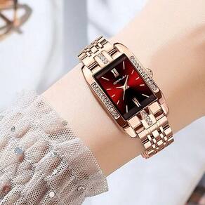 Relógio De Quartzo Feminino Design Quadrado Bracelete De Aço Inoxidável Impermeavel 3atm Vermelho