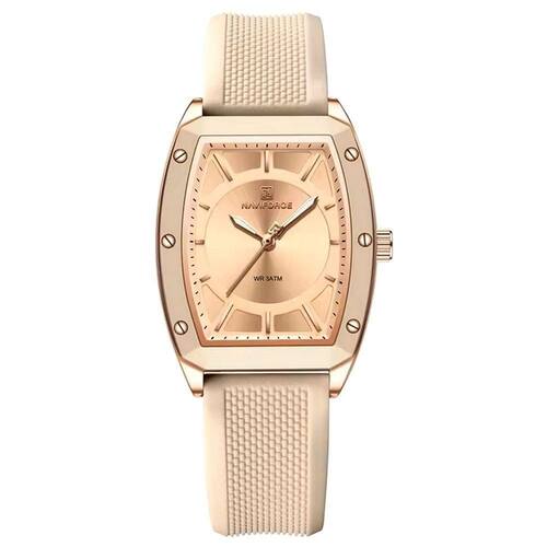 Este elegante relógio de quartzo apresenta um design tonneau que combina estilo e funcionalidade. Com seu formato distinto, o mostrador é realçado por um acabamento suave e minimalista, ideal para mulheres que apreciam um toque de sofisticação em sua rotina diária.
