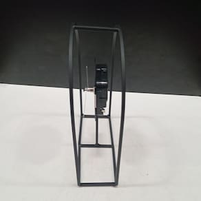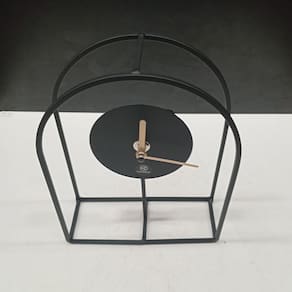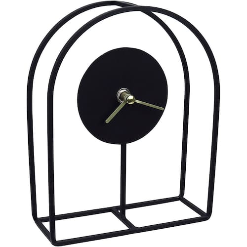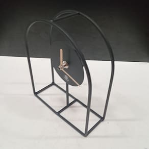 RELÓGIO DE MESA Altura: 20,4 cm Largura: 16 cm Profundidade: 6 cm Peso: 0,25 Kg Material: Metal Cor: Preto