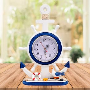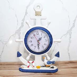 Relógio de Mesa Ancora Timão Náutico Marítimo Azul e Branco