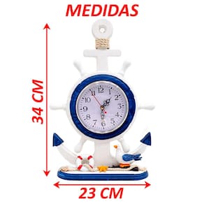 Relógio Decorativo Mesa Marítimo Ancora Timão Náutico 34cm -