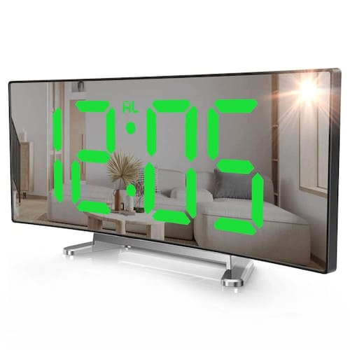 Relógio Despertado Mesa Cabeceira Digital Espelhado Curvado