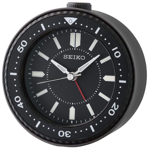 O despertador Mai Seiko é inspirado no design de um relógio Seiko O movimento do cristal de quartzo permite uma cronometragem mais precisa O LED piscando quando o alarme toca acordará a pessoa mais sonolenta também tem função soneca Varredura silenciosa do ponteiro dos segundos para que não haja som irritante de tique taque Os marcadores de horas LumiBrite e os detalhes dos ponteiros tornam este relógio fácil de ler no escuro.