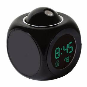 Características: - Moderno eDe alta qualidade. - Pressionando o botão superior, a voz informa o horário em inglês - Projetor de Tempo no topo, mostrando o tempo em uma superfície lisa por 10 segundos - O Projetor É Giratório Ajustável. - Display de LED Hora e Temperatura. - Alarme com 10 Função de Soneca. - Multifunção: As características da luz noturna, projetor e despertador juntos. - Realiza as Funções básicas de um relógio, exibindo tempo, temperatura e acordando você de Manhã.