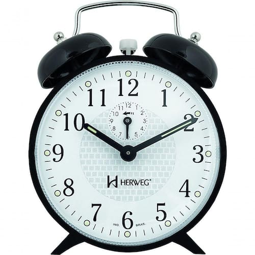 Relógio Despertador Mecânico A Cordas 2206 Preto - Preto Relógio Despertador Mecânico a Cordas 2206 Preto - Preto - Despertador de Cabeceira com Alarme Super Forte acorda de sono pesado Despertador Mecânico - 2206 Estilo: Clássico Medidas: 14A x 10L x 5E cm Características Técnicas: Alarme com som campainha Disponível na linha Promocional Mostrador Fosforescente Funcionamento Mecânico Produto Nacional Ponteiros com massa luminosa