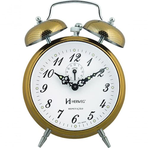 Relógio Despertador Mecânico Vintage Retro Herweg Ref - 2380 Dourado Relógio Despertador Mecânico Vintage Retro Herweg Ref - 2380 Dourado - Relógio Despertador Mecânico Vintage Retro Herweg Ref - 2380 Despertador Mecânico - 2380 Estilo: Clássico Medidas: 12x16x5 cm Características Técnicas: Alarme campainha com repetição Disponível na linha promocional Funcionamento Mecânico Informações sobre o produto Relógio Despertador Mecânico Base em metal pintado Visor de acrílico Botões de regulagem na parte traseira e na parte superior do produto