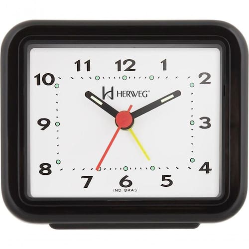Relógio Despertador Quartz Alarme Forte Preto - Preto Relógio Despertador Quartz Alarme Forte Herweg Preto - Preto - Relógio Despertador Quartz Alarme Forte Herweg Mostrador Fosforescente Disponível na Linha Promocional Usa PIlha AA Alarme Sonoro Mecanismo Step Produto Ponteiros com Massa Luminosa