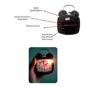 Relógio Despertador Retrô Analógico Preto Pequeno com LED Relógio Despertador Retrô Analógico Preto Pequeno com LED é a escolha ideal para quem busca praticidade, estilo e um toque vintage no dia a dia. Com design retrô quadrado, compacto e elegante, ele combina funcionalidade e decoração em qualquer ambiente, seja no quarto, sala ou escritório. Além de garantir pontualidade, oferece uma maneira charmosa de começar as manhãs, sem depender de dispositivos digitais. Com números grandes e ponteiros bem definidos, a leitura da hora é simples e imediata, perfeita para quem valoriza clareza e praticidade. O despertador mecânico proporciona um som eficiente e confiável para acordar no horário certo, mantendo a rotina organizada e produtiva. O tamanho compacto, com apenas 12,5 cm de altura, 8,5 cm de largura e 4,4 cm de espessura, garante discrição e versatilidade, ocupando pouco espaço e se adaptando a qualquer mesa de cabeceira ou ambiente de trabalho. A luz LED integrada oferece mais comodidade, permitindo visualizar as horas mesmo em ambientes escuros, sem necessidade de acender lâmpadas ou interromper o descanso. O ajuste de hora e alarme é totalmente intuitivo, sem menus complicados ou funções desnecessárias, ideal para quem prefere a simplicidade eficaz de um relógio analógico clássico. Produzido em ferro, ABS e componentes elétricos de qualidade, o Relógio Despertador Retrô Analógico Preto Pequeno com LED é resistente e durável, desenvolvido para quem busca um produto confiável para o uso diário. Funciona com apenas 1 pilha AA não inclusa , garantindo autonomia prática sem fios ou tomadas, podendo ser colocado em qualquer lugar da casa. O charme do design vintage se destaca como um diferencial, trazendo um ar nostálgico e elegante à decoração. Esse modelo é perfeito para quem deseja unir funcionalidade e estética, criando um ambiente acolhedor e organizado. Seja para uso pessoal ou como presente, é uma opção versátil que agrada diferentes estilos e necessidades. Especificações Técnicas: Modelo: Relógio Despertador ZB-2015 Material: Ferro, ABS e componentes elétricos Dimensões aproximadas: 12,5 cm de altura x 8,5 cm de largura x 4,4 cm de espessura Fonte de alimentação: 1 pilha AA não inclusa Formato: Retrô quadrado Função: Luz LED para visualização noturna Tipo de som: Despertador mecânico Itens inclusos: 01 Relógio Despertador Retrô Analógico Preto Pequeno com LED Além da qualidade e estilo, este produto conta com de 3 meses, oferecendo segurança e tranquilidade na compra. A cobre eventuais defeitos de fabricação, reforçando o compromisso com a confiabilidade e a satisfação do cliente. Com o Relógio Despertador Retrô Analógico Preto Pequeno com LED, você garante pontualidade, praticidade e charme em um único produto. Uma escolha inteligente para quem deseja aliar funcionalidade, design clássico e confiabilidade no dia a dia.