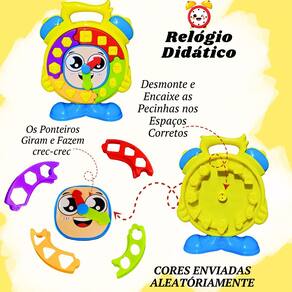 • Com seu design colorido e atraente, o Relógio Didático proporciona uma experiência única, ensinando às crianças a noção de tempo e explorando conceitos matemáticos de maneira envolvente.