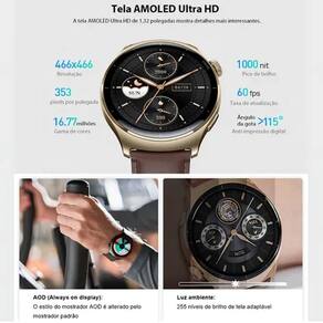 Conectividade incomparável: Receba notificações, mensagens e chamadas diretamente no seu pulso. O mantém você conectado ao seu mundo, permitindo que você gerencie sua vida de forma mais eficiente, mesmo em movimento.