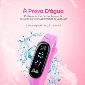 Relógio Digital Infantil Barbie à Prova D'água - Para Crianças a partir de 5 anosEncante sua pequena com este adorável relógio digital infantil temático da Barbie! Com um design em forma de bracelete, é a opção perfeita para as pequenas fãs da boneca.Características Principais:- À prova d'água: Perfeito para brincadeiras na água, como na piscina ou na praia, sem preocupações.- Pulseira ajustável: Proporciona o máximo de conforto, podendo ser facilmente ajustada para se encaixar no pulso da criança.- Ideal para crianças a partir de 5 anos: O presente perfeito para as meninas que adoram a Barbie e estão começando a aprender as horas.Este relógio não só ajuda as crianças a aprenderem a ler as horas, mas também permite que elas exibam seu amor pela Barbie em grande estilo. Garanta o seu agora e faça a alegria da sua pequena fashionista! O envio é imediato e a satisfação é garantida. Aproveite!