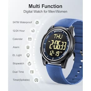 - Relógio digital masculino: fuso horário duplo, interruptor de 12/24 horas, calendário automático, despertador, alarme de hora em hora e alarme diário