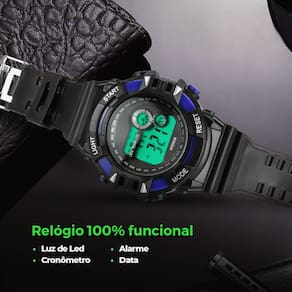 Relógio Digital Infantil Orizom Kids: IMPORTANTE: DETALHES INTERNOS DO RELOGIO, COMO DESIGNER DOS NUMEROS, PODEM VARIAR DE ACORDO COM DISPONIBILIDADE EM ESTOQUE, BEM COMO A COR DA LUZ DE LED PODE VARIAR PRA AZUL OU VERMELHO!Marca: OrizomModelo: KidsCor: Preto com detalhes em azulMostrador: Digital, com números grandes para fácil leituraPulseira: Em silicone ajustável, servindo em qualquer tamanho de pulso, garantindo conforto e ajuste perfeitoFunções: Mostra a hora com precisão, acompanhado de luz de LED para facilitar a visualização em ambientes escurosCaracterísticas: Leve, resistente e confortável, ideal para acompanhar as atividades do dia a dia das crianças Caixa Ultra Premium Orizom Kids: Tema: Foguete, em alusão à linha "Pequeno Astronauta" da Orizom KidsFinalidade: Acomoda o relógio com segurança, sendo uma excelente escolha para presentear seu pequenoQualidade: Feita com materiais duráveis, oferecendo proteção e uma apresentação elegante para o relógioEste kit é a escolha perfeita para crianças e adolescentes, seja para o uso na escola, brincadeiras, ou eventos especiais. A caixa temática de foguete traz um toque lúdico e criativo, tornando o presente ainda mais especial. Adquira já o Relógio Digital Orizom Kids e presenteie seu pequeno astronauta com um acessório cheio de estilo e funcionalidade!