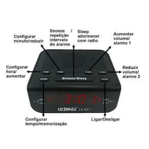 Relógio Digital de Cabeceira Despertador Visor LCD Chega de perder a hora por falta de um bom despertador em casa Agora com o Rádio Relógio Digital Despertador Lelong você pode dormir tranquilamente com a certeza que no dia seguinte irá poder cumprir seus compromissos. Possui um visor LCD amplo que permite uma fácil leitura do conteúdo no ecrã. Agora, pode ver as horas e o alarme facilmente, mesmo à distância. Ideal para pessoas de idade mais avançada ou com problemas de visão. Fácil de utilizar Definição simples do relógio para configurar a hora e o alarme sem necessitar de instruções - Regulagem de luminosidade Acorde ao som da sua estação de rádio favorita ou de um alarme Temporizador para adormecer ao som da sua música favorita Repetição do alarme para dormir mais um pouco Pilha reserva instalada para garantir o funcionamento do relógio durante falhas de energia Sintonize com seus programas de rádio favoritos - Sintonizador FM/MW - Sintonizador estéreo FM/MW AM Definição simples do relógio A hora e o alarme são tão fáceis de configurar que provavelmente nem será necessário consultar o Manual de início rápido ou as Instruções de utilização. Basta observar os botões do rádio relógio para definir a hora e o alarme. Acorde com o rádio ou aviso sonoroEscolha se prefere acordar pela manhã ao som da sua estação de rádio favorita ou alarme sonoro. Repetidor de AlarmeNós sabemos que nem sempre conseguimos acordar ao som do primeiro sinal não é mesmo Pensando nisso esse rádio relógio possui a função de repetição do alarme. Agora, quando o alarme tocar e você quiser dormir mais um pouco, basta pressionar uma vez o botão de repetição do alarme e voltar a dormir. Nove minutos depois o alarme volta a tocar. TemporizadorO temporizador te permite decidir durante quanto tempo pretende ouvir música ou uma estação de rádio à sua escolha antes de adormecer. Basta definir um limite de tempo até 1 hora e escolher uma estação de rádio para ouvir enquanto adormece. Características TécnicasMaterial: PlásticoTela: LCDBivolt 110-220v Tecnologia: DigitalSintonizador FM/MW Sintonizador estéreo FM/MW AM Repetidor de AlarmeRegulagem de LuminosidadeMedida: 11,5 cm x 4,5 cm x 8,5 cm Itens Inclusos1 Radio Relógio Despertador LE-6711 Manual de instruções ====================== Dúvidas Frequentes - O produto é resistenteTrabalhamos apenas com produtos com material de altíssima qualidade, durabilidade e procedência.