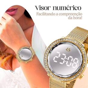 O relógio feminino digital da renomada marca Orizom Maria é fabricado com materiais de alta qualidade, banhado a ouro e possui um maquinário em aço inoxidável para garantir durabilidade e precisão. A pulseira ajustável de silicone proporciona conforto incomparável.