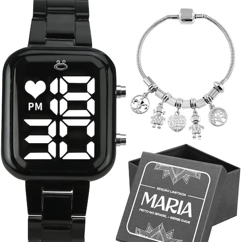 Além disso, o kit acompanha uma Caixa Premium Orizom Maria com temática Maria gravada, perfeita para presentear e guardar o relógio e os acessórios. Ideal para o Dia dos Namorados ou para demonstrar seu amor e carinho pela pessoa amada.