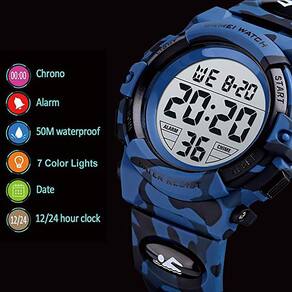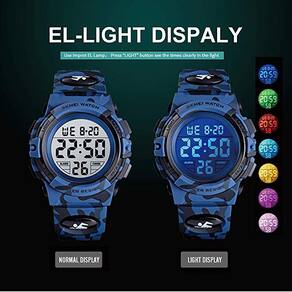 ?? Relógio digital infantil MULTIFUNCIONAL ??: 50 M à prova d'água, resistente a choques, despertador, cronômetro, exibição de semana e data, iluminação traseira de 7 cores, ponteiro luminoso, calendário, função de horário de 12H/24H, toque de hora em hora, cronômetro de 1/100 segundo com função de contagem dividida.