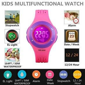 ?? Relógio digital infantil MULTIFUNCIONAL ??: 50 M à prova d'água, resistente a choques, despertador, cronômetro, exibição de semana e data, iluminação traseira de 7 cores, ponteiro luminoso, calendário, função de horário de 12H/24H, toque de hora em hora, cronômetro de 1/100 segundo com função de contagem dividida.