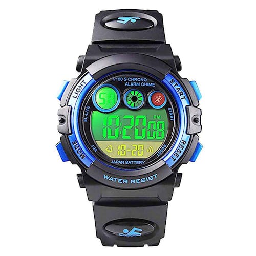 ?? Relógio digital infantil MULTIFUNCIONAL ??: 50M à prova d'água, resistente a choques, despertador, cronômetro, exibição de semana e data, iluminação traseira de 7 cores, ponteiro luminoso, calendário, função de horário 12H/24H, sinal de hora em hora, cronômetro de 1/100 segundos com função de contagem dividida.