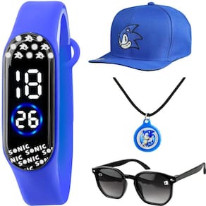 Relógio Digital Infantil + Colar + Óculos Proteção UV + Boné Luz Menino Preto Silicone Data Kit Infantil - Relógio Digital, Boné, Óculos de Sol, Colar e Pingente