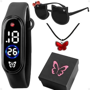 Kit Orizom Kids: Relógio Digital Infantil com Óculos de Sol, Colar e Caixa Premium Tema Borboleta!