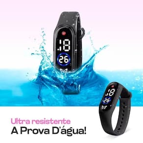 - Relógio digital infantil com pulseira de silicone ajustável.