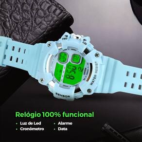 Marca: Orizom Modelo: Kids Cor: Azul bebê Mostrador: Digital, com números grandes para fácil leitura Pulseira: Feita em silicone ajustável, garantindo conforto e um ajuste seguro Funções: Exibe a hora com precisão e possui luz de LED para facilitar a visualização em ambientes escuros Características: Leve, resistente e confortável, ideal para o dia a dia de crianças ativas