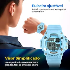 Relógio Digital Infantil Orizom Kids: Ideal para pequenos astronautas! Marca: Orizom Modelo: Kids Cor: Azul bebê Mostrador: Digital, com números grandes para fácil leitura Pulseira: Feita em silicone ajustável, garantindo conforto e um ajuste seguro Funções: Exibe a hora com precisão e possui luz de LED para facilitar a visualização em ambientes escuros Características: Leve, resistente e confortável, ideal para o dia a dia de crianças ativas Caixa Ultra Premium Orizom Kids: Inspirada na linha "Pequeno Astronauta", perfeita para presentear com elegância e segurançaEste é o presente perfeito para crianças e adolescentes, seja para o dia a dia ou ocasiões especiais. A temática de foguete na caixa traz um toque lúdico e criativo, tornando o presente ainda mais especial. Adquira já o Relógio Digital Orizom Kids e encante seu pequeno astronauta com um acessório que combina estilo e praticidade!
