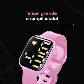 Relógio Digital Infantil - Orizom: - Design moderno e fácil de ler, perfeito para crianças a partir de 4 anos. - Pulseira ajustável de silicone e maquinário resistente, garantindo durabilidade e conforto. - Cor rosa vibrante com visor preto, unindo delicadeza e estilo.