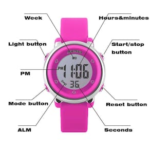 Destaques: - Movimento japonês : fornece uma cronometragem precisa e precisa - 50 m de resistência à água: uso diário à prova d'água, lavagem à mão, banho, natação, sem problemas. (Por favor, NÃO PUXE o botão debaixo d'água) — Multifuncional: resistente à água, calendário, data da semana, mês, alarme, tela de LED, luz de fundo, resistente a choques, cronômetro — Luzes LED importadas: use luzes LED coloridas importadas, basta pressionar o botão de luz de fundo à esquerda, você pode ver claramente a hora à noite — Excelente material para PC e parte traseira de aço inoxidável, pulseira de silicone de alta qualidade e vidro de resina altamente transparente: - Material da capa: PC material - Material da pulseira: silicone - Superfície do espelho: vidro de resina altamente transparente - Fivela: aço inoxidável Especificação: - Diâmetro da caixa do mostrador: 1,3 polegadas/33 mm - Espessura da caixa do mostrador: 0,51 polegadas/13 mm - Altura da cabeça: 1,49 polegadas/38 mm - Largura da pulseira: 0,67 polegadas/17 mm - Comprimento da pulseira: 8,74 polegadas/222 mm - Circunferência máxima: 8,07 polegadas/205 mm - Circunferência da mistura: 5,9/150 mm - Tipo de fecho da pulseira: fivela - Peso do relógio: 1,09 onças/31 g - Cor: roxo, rosa, verde, branco, preto, azul Embalagem: - 1* relógio infantil - 1* manual de instruções - 1* bolsa de tecido - 1* caixa de presente Nota: - Por favor, NÃO PUXE o botão debaixo d'água.