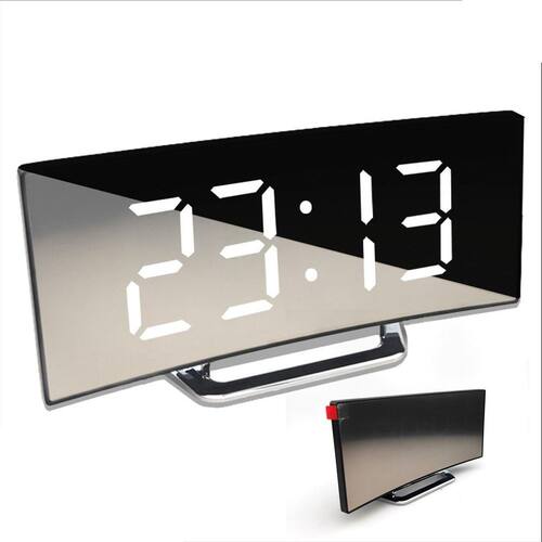 Relógio digital led espelhado curvado temperatura mesa Relógio led digital portátil mesa despertador calendário