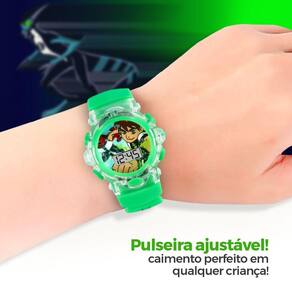 Relógio Digital Led Infantil Silicone Ben10 Verde Luz +
