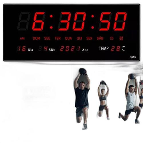 Relógio de parede led digital grande com calendário e alarme é ideal para diversos ambientes como lojas, igrejas, cafés, escritórios, consultórios, academias, residências e comércio em geral. Com visualização a distância e exibição de minutos, ano, mês, data, temperatura e hora, ele é construído em plástico resistente e possui memória interna para manutenção dos dados em caso de interrupção de energia. Além disso, seu design moderno e sistema de ajuste intuitivo proporcionam uma instalação simples e prática.