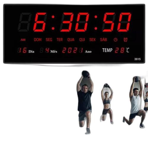 Relógio de parede led digital grande com calendário e alarme é ideal para diversos ambientes como lojas, igrejas, cafés, escritórios, consultórios, academias, residências e comércio em geral. Com visualização a distância e exibição de minutos, ano, mês, data, temperatura e hora, ele é construído em plástico resistente e possui memória interna para manutenção dos dados em caso de interrupção de energia. Além disso, seu design moderno e sistema de ajuste intuitivo proporcionam uma instalação simples e prática.