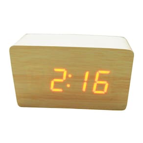 Relógio de Mesa DigitalFonte de Alimentação: Via adaptador USB ou 4 pilhas ''AAA''Material: MadeiraCores: Marrom e BegeFormato da Hora: 12/24Possui sensor de toque, quando os Ledes apagamO relógio mostra: Hora e TemperaturaDimensões Aproximadas: Comprimento: 10 cm Altura: 6 cm Largura: 4 cmProduto de ótima qualidadeFácil ManuseioExcelente para qualquer tipo de ambiente, perfeito para presentes diferentes e em qualquer ocasião.