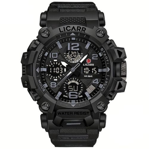 Experimente elegância e funcionalidade com o incrível. Este relógio é mais do que apenas um acessório; é uma declaração de estilo e utilidade, projetado para acompanhar você em cada momento do seu dia. Com um design otimizado para aventuras e para a vida cotidiana, possui uma caixa de resina sintética extremamente durável que protege o dispositivo, tornando-o ideal tanto para homens com estilo ativo quanto casual. Entre as características notáveis está seu inovador sistema de exibição dupla, que integra data e cronômetro para quem não abre mão da tecnologia e precisão em seus compromissos diários.