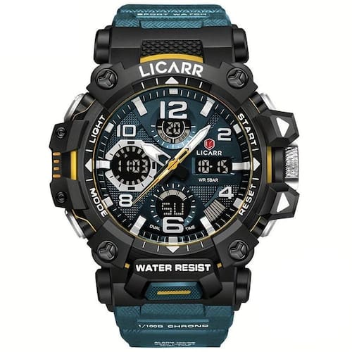 Experimente elegância e funcionalidade com o incrível. Este relógio é mais do que apenas um acessório; é uma declaração de estilo e utilidade, projetado para acompanhar você em cada momento do seu dia. Com um design otimizado para aventuras e para a vida cotidiana, possui uma caixa de resina sintética extremamente durável que protege o dispositivo, tornando-o ideal tanto para homens com estilo ativo quanto casual. Entre as características notáveis está seu inovador sistema de exibição dupla, que integra data e cronômetro para quem não abre mão da tecnologia e precisão em seus compromissos diários.