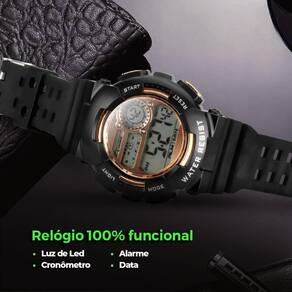 Relógio Digital Masculino Infantil Pulseira Silicone Ajustável + Caixa Tema Foguete - Orizom Kids Relógio Digital Infantil Orizom Kids: - Marca: Orizom - Modelo: Kids - Cor: Preto com detalhes em rosé opcionalmente dourado - Mostrador: Digital, números grandes para fácil leitura - Pulseira: Silicone ajustável para qualquer tamanho de pulso - Funções: Exibe a hora com precisão, luz de LED para ambientes escuros - Características: Leve, resistente e confortável