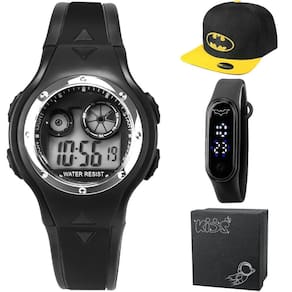Relogio digital preto infantil criança batman + bone + caixa Descubra o estilo único do Conjunto Orizom Kids - Batman, uma opção distinta para presentear com elegância e funcionalidade.
