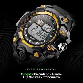 Relogio digital prova dagua ajustavel silicone corrida robusto esportivo grande Relógio digital masculino orizom spaceman preto com detalhe dourado - resistente à água
